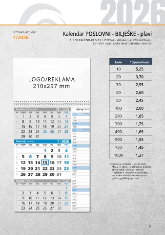 oznaka artikla: Kalendar POSLOVNI - BILJEŠKE - plavi